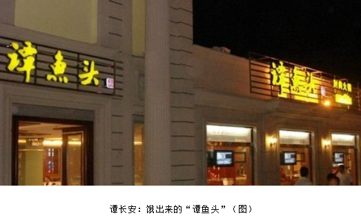 “慢慢的開始有了連鎖經(jīng)營的概念!弊T長安說道,“我認(rèn)為我最成功的地方在于,表面上看‘譚魚頭’是在開店,其實(shí)我們是在把無形資產(chǎn)資本化。在北京開店時(shí),我沒出一分錢,我?guī)е业亩拱、找了一幫農(nóng)民娃娃帶到了北京。我建立了一種連鎖加盟的模式,不需要出一分錢就可以占有35%到55%的股份。同時(shí),在一個(gè)‘吃味道’的年代,我抓住了機(jī)會。”