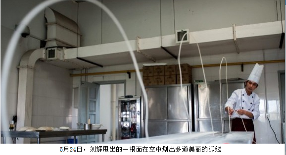 日前,劉輝在上海大世界吉尼斯紀(jì)錄挑戰(zhàn)中,甩出一根1918米的面,打破原“南詔一根面”1704米的世界紀(jì)錄,同時(shí)用面團(tuán)吹出直徑1.5米的“氣球”,獲得“最長一根面”和“直徑最大的面團(tuán)氣球”兩項(xiàng)上海大世界吉尼斯紀(jì)錄。22歲的天津青年職業(yè)學(xué)院烹飪系教師劉輝,來自山西太原,學(xué)習(xí)面食技藝已經(jīng)5年多,堪稱面食“達(dá)人”。