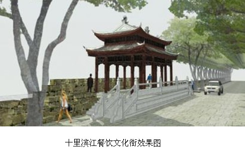 劉剛說(shuō),在10公里的濱江大道上,規(guī)劃了八個(gè)景觀節(jié)點(diǎn),沿江的城墻以及6座城門(mén),“這是在原址上再現(xiàn)清代城門(mén)!