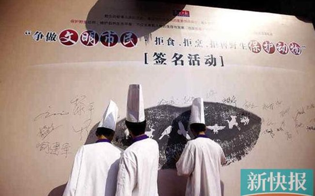 由東莞市文明辦和市林業(yè)局共同主辦的“爭做文明市民,拒食野生保護動物”公益倡議活動上周五啟動,當(dāng)天就吸引了百余家餐飲單位的廚師聯(lián)合簽名拒烹野生保護動物。