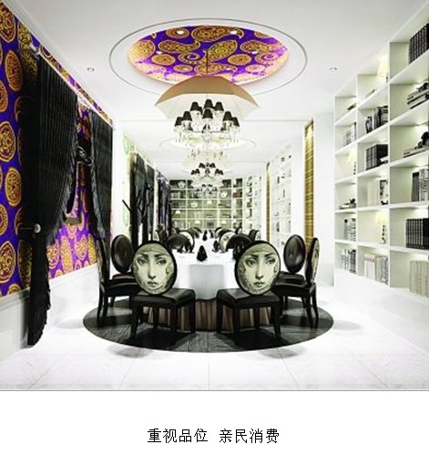 創(chuàng)意川湘菜餐廳呈現(xiàn)時尚、新潮的設(shè)計風(fēng)格,店內(nèi)家具均以白色皮革箱造型為主,透露出溫馨的歸屬感和留洋小資品位;整體色彩純凈,弧形墻體、剔透的鳥籠及觸手可及迎面撲來雅致的書櫥使空間富于流動和變化;天棚掛懸的小胖白天使裝飾物進(jìn)一步豐富了視覺空間,卡座以及四周炫目的世界一線奢侈品牌的彩繪圖案,使得店內(nèi)空間充滿了活力的跳躍感,彌漫著時尚青年向往的留洋生活氣息。