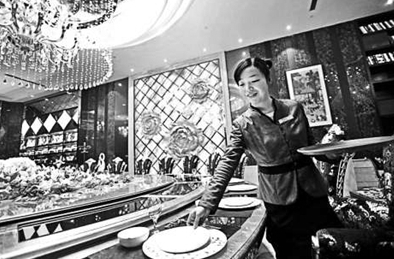 此外,“包間”內(nèi)的服務(wù)人員更多,通常1-2名服務(wù)員為一個包間服務(wù),而在大堂通常是1名服務(wù)員為3-4桌服務(wù)。