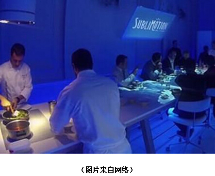 其實(shí),一家名為El Celler de Can Roca餐廳也發(fā)揮過類似的創(chuàng)意。該餐廳利用投影儀、噴霧器等營造氛圍,圍繞歷史、記憶、山水和詩歌幾個(gè)主題,把12位客人安排在圓桌前用餐,讓食客們?cè)谥T多截然不同世界中“轉(zhuǎn)換自如”,一會(huì)兒去月球喝飲料,一會(huì)兒又深入漆黑森林大快。