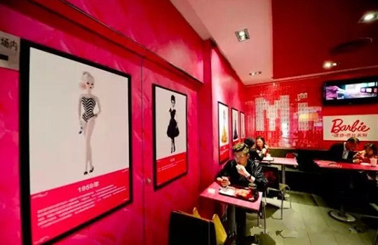眼下其就在北京、廣州、青島、重慶開了多家芭比主題餐廳。店內(nèi)各個角度都設(shè)有高挑靚麗的芭比人形展板,椅背、墻面也被加上芭比元素,還有放滿整個櫥窗的迷你芭比娃娃系列,甚至連店員的服裝也是粉色...
