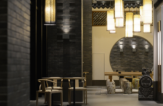 本次肯德基概念店的設(shè)計(jì)充分提煉了江南古鎮(zhèn)的四季景致,以簡單的線條勾勒出綠竹、花窗、月門、及粉墻黛瓦。并以長城灰、玉脂白、國槐綠為主,結(jié)合原木色及黑色,營造寧靜內(nèi)斂的“新中式”空間。其中一亭一臺(tái)一樓一閣一磚一樹,無一不體現(xiàn)著江南古典園林所特有的詩情畫意。
