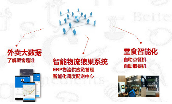 此外,我們還自己研發(fā)了狼巢智能物流配送系統(tǒng)。門店采用自助點(diǎn)餐、自助取餐,打造智能化餐廳。