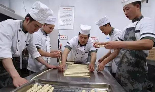 “鐺鐺……”清晨4時,鬧鈴響過后,司務(wù)長丁紅從床上彈了起來,他邊穿衣服邊喊著“起床”的口令。炊事班的一天就這樣開始了,有的同志整理內(nèi)務(wù),有的同志“占領(lǐng)”廁所,有的同志搶占洗漱臺。4時15分,準(zhǔn)時開火,炊事操作間內(nèi),8名穿著炊事服的身影開始忙起來。