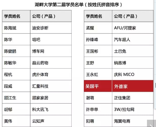 如果說,58同城總裁姚勁波、唱吧CEO陳華、易果生鮮董事長張曄、慶科CEO王永虹等接受過阿里投資的企業(yè)家,成為第二批學員并不稀奇,那么賈國龍、吳國平為什么要上這時髦的大學?
